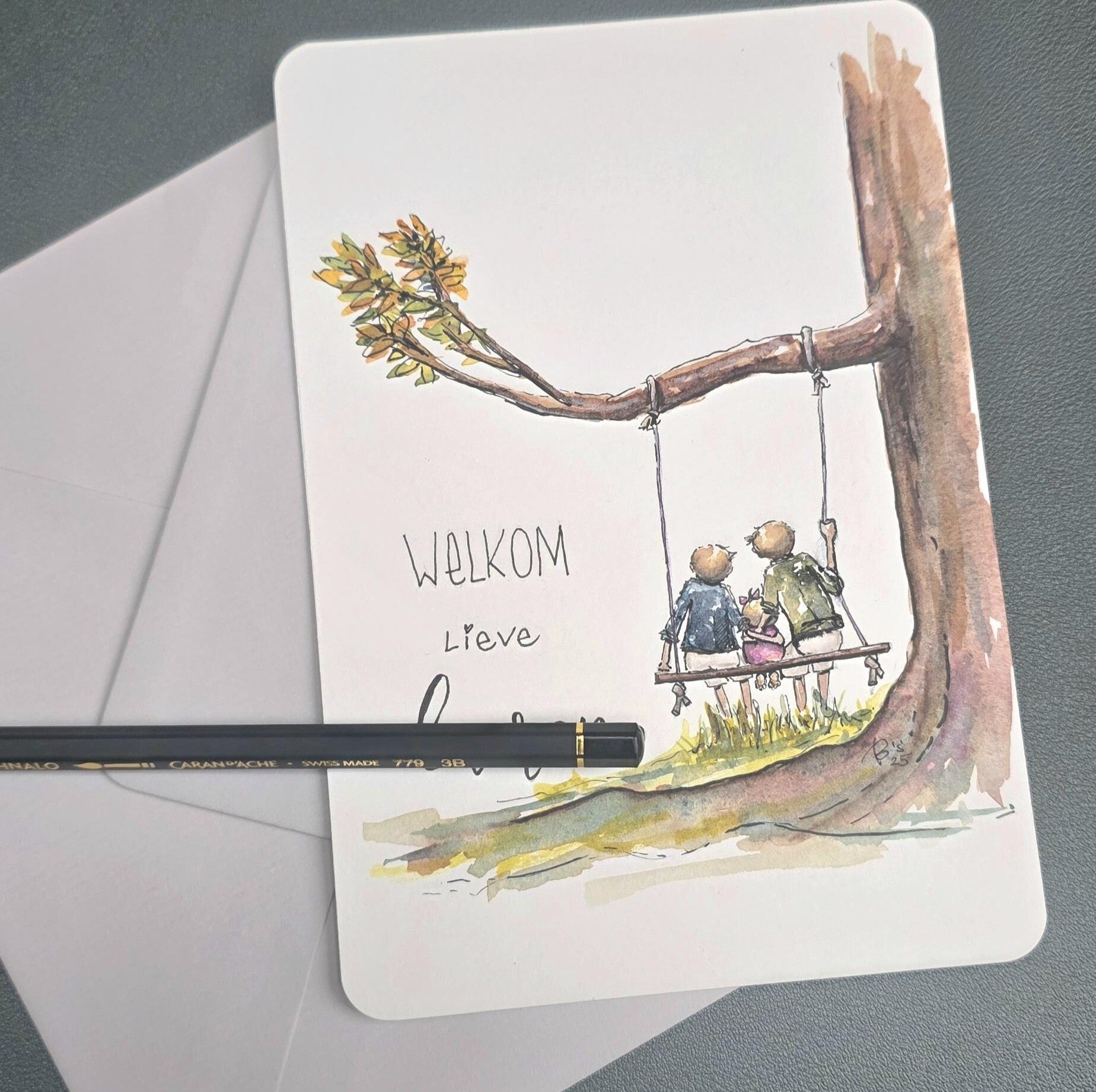 Kun je geen 'standaard' geboortekaartje, verhuiskaartje, trouwkaart, uitnodiging of Kerstkaart vinden die helemaal naar jouw wens(en) is? Ik kan er een voor je tekenen in de stijl en met de elementen die jij graag zou willen.